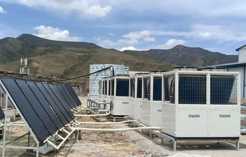 甘肅某中鐵三局選擇聚陽王牌空氣能合作采暖,用光伏板與空氣能相結合,冬天采暖效果更好。