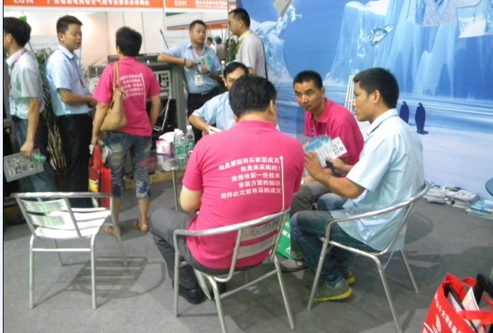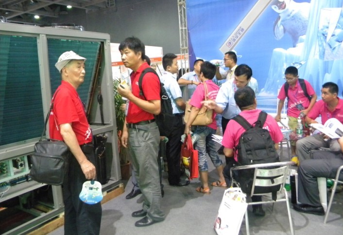 參展的當天,眾多的實力派熱泵廠商參加,他們有用豪華的門面,良好的地理位置,但是,人氣方面,不如我們清華王牌熱鬧,我們的展會已經不算小,但被進來看3D無霜熱泵的參展商擠得水泄不通。